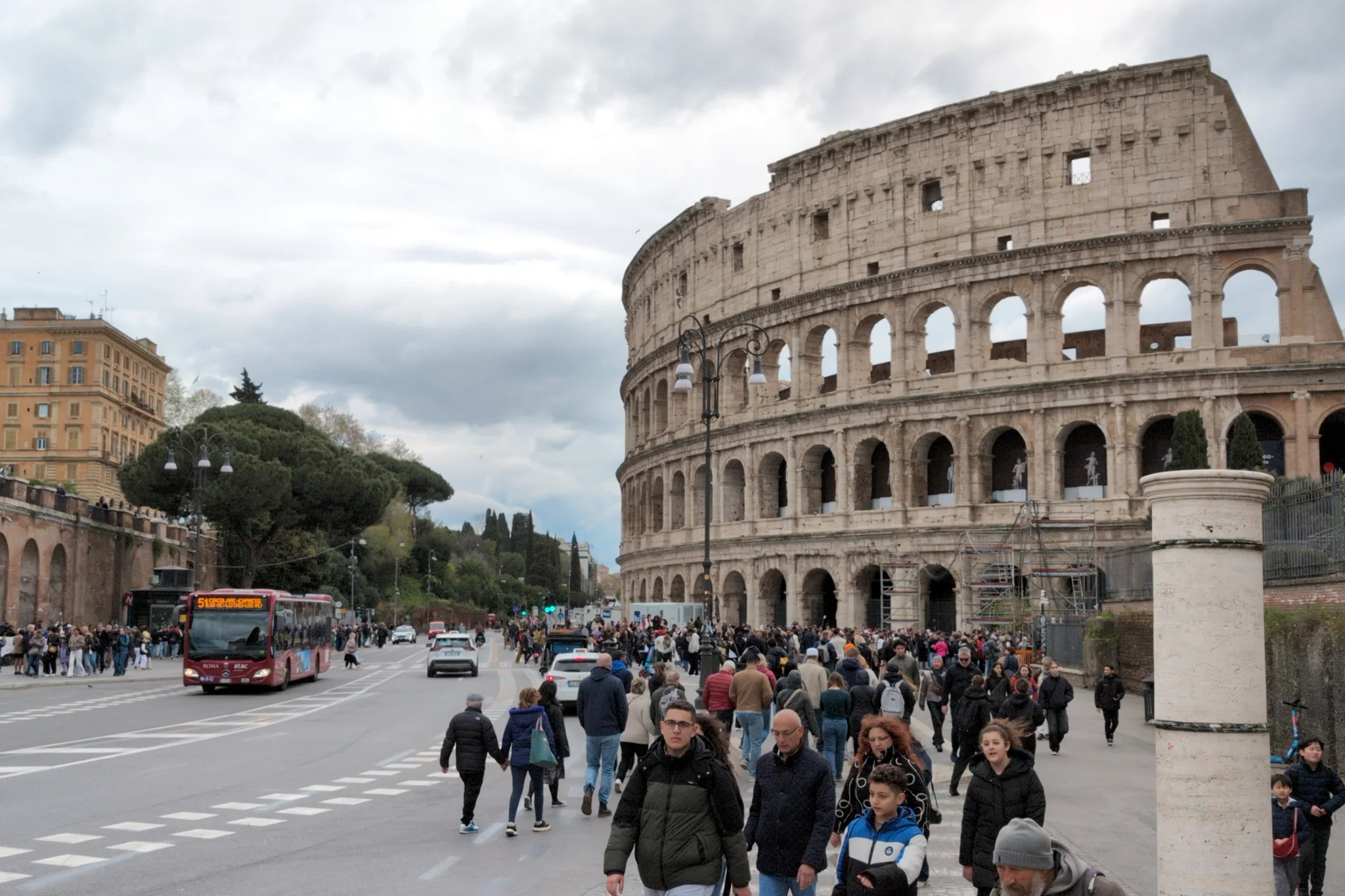 Rome underwhelmed me, however. Whatever illusions of la dolce vita you might harbour, dispel them. There is plenty of historic architecture in various states of ruin, but the overwhelming theme of Rome is cars. Perhaps it’s connected to the fact that the metro network is so desultory, but every space that isn’t filled with as many lanes of traffic as they could squeeze between the buildings is given over to static cars parked double or even triple. We walked the Appian Way from the Parco della Caffarella to the Colosseum; for most of the route the cobbled street is two lanes of speeding vehicles, with only a narrow painted-on strip for pedestrians on each side.