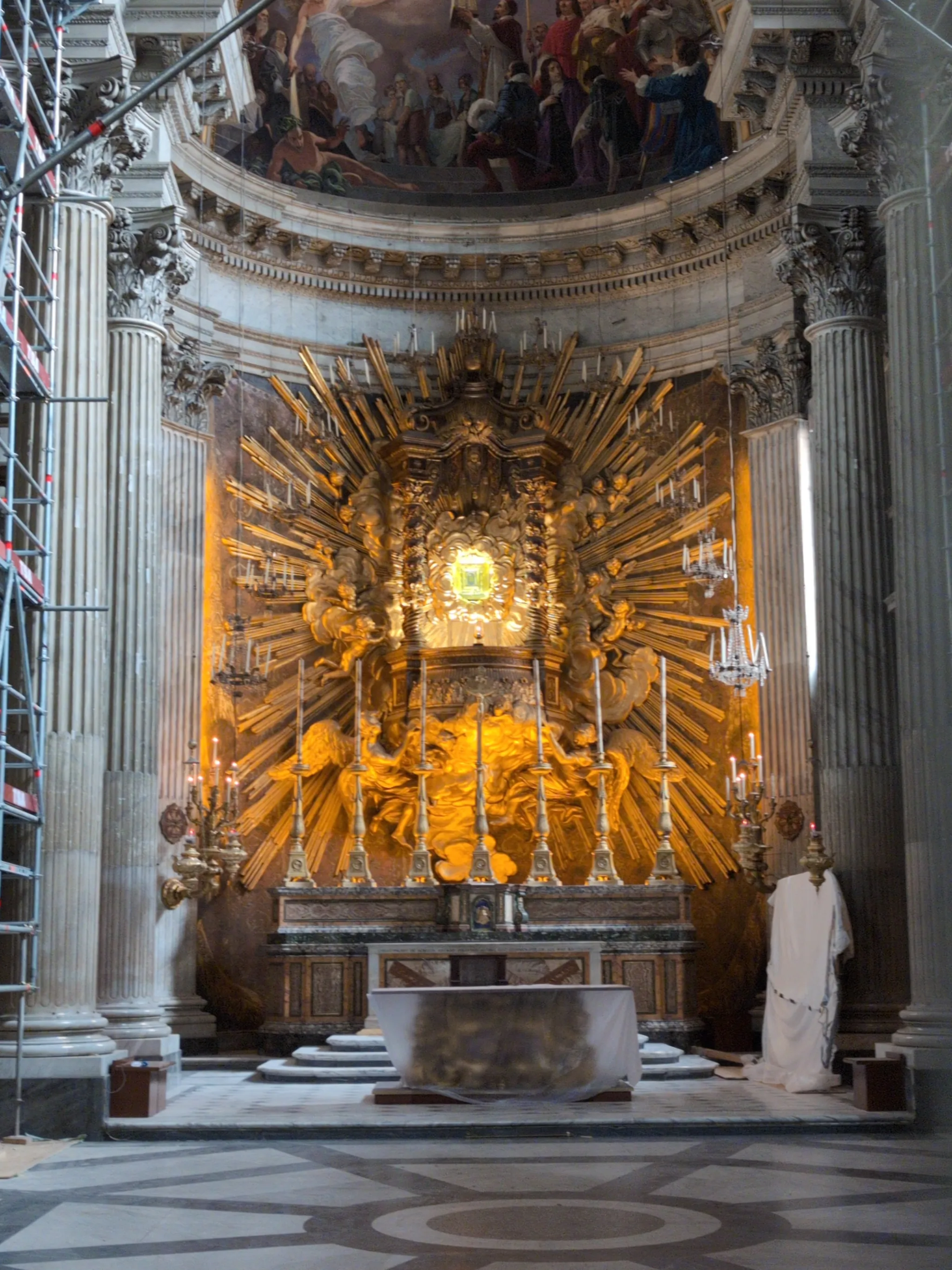 The churches are worth looking inside; for example, amongst all the scaffolding and repairs in Santa Maria in Portico di Campitella is a stunning 17th century altar: